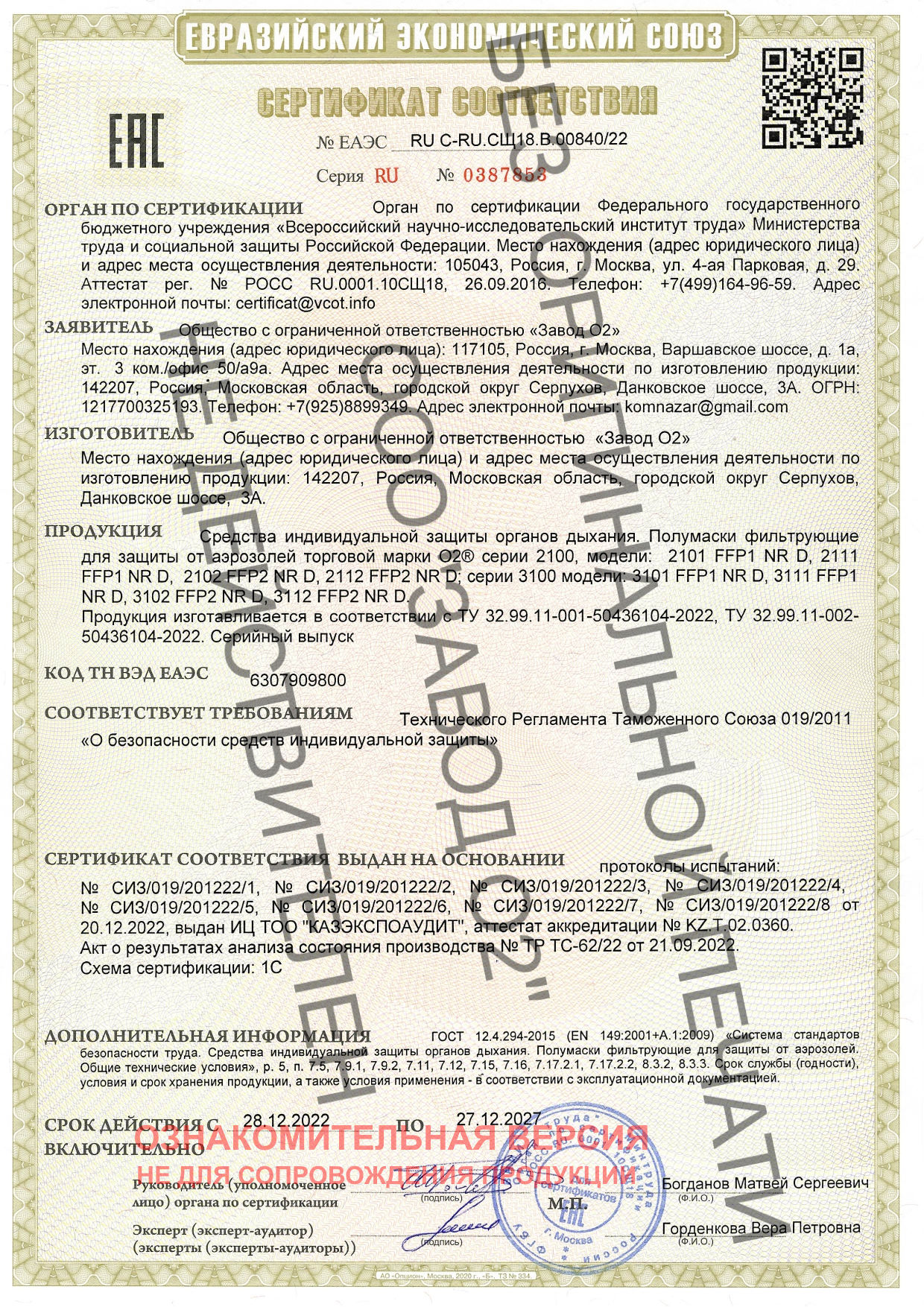 | Сертификаты: | ГОСТ 12.4.294-2015, ТР ТС 019/2011 |